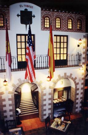 | Decoraciones Tematicas Transformamos cualquier espacio en un lugar unico. Desde la ambientacion arquitectonica integral a los elementos artisticos que la complementan, creamos tematizaciones permanentes de alta calidad practica y estetica. El Restaurante Don Quixote, situado en Coconut Grove, Miami fue diseñado como un pueblo manchego del Siglo XVII. Los elementos arquitectonicos se completaron con cielos pintados y trampantojos para simular una plaza al aire libre. |