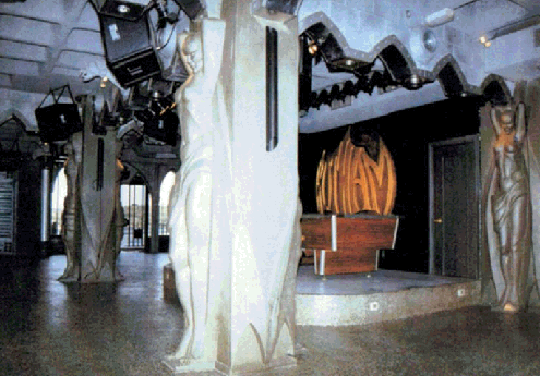 | La Discoteca Gotham, en Madrid, fue creada sobre un espacio de oficinas. Varias barras luminosas, columnas escultoricas, arcos goticos, gargolas, puertas blindadas y dos grandes mascaras fueron diseñadas para la tematizacion permanente de este local en Pozuelo de Alarcon. |