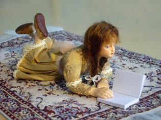 Cristina's miniature figures are original creations, each entirely crafted from scratch. These character dolls are made for those who wish to go beyond traditional 1/12 scale figures and complement their doll-houses with unique art pieces, each one with its own personality. Since every piece is a one-of-a-kind work of art, they are subject to availability. To order an available piece, contact the studio. |