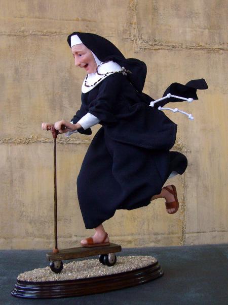 | 18 inches. One of a Kind. Super Sculpey and fabric over wire armature. Glass eyes. Status: SOLD. |