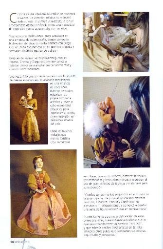 | The Spanish magazine, specialized in doll houses and miniatures, features some of Cristina's art dolls along with a beautiful article in its September-October 2006 Issue. To know more about MuñeCas Magazine, visit www.mirarte-ediciones.com |